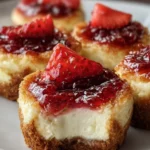 Delicious strawberry cheesecake cookies with a graham cracker base, cream cheese filling, and a sweet strawberry topping.