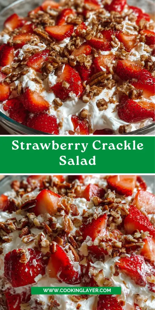 Creating this Strawberry Crackle Salad is more than just a cooking experience; it’s a joyful journey filled with delightful flavors and textures. The vibrant colors of fresh strawberries teamed with the satisfying crunch of pretzels create a dish that impresses both the eye and the palate. I love bringing this salad to gatherings, watching friends and family delight in every bite. It’s the perfect recipe to accompany memories made around the table. So why not embrace this sweet, crunchy delight in your kitchen? Your loved ones will thank you, and you’ll have a new favorite dish to treasure!