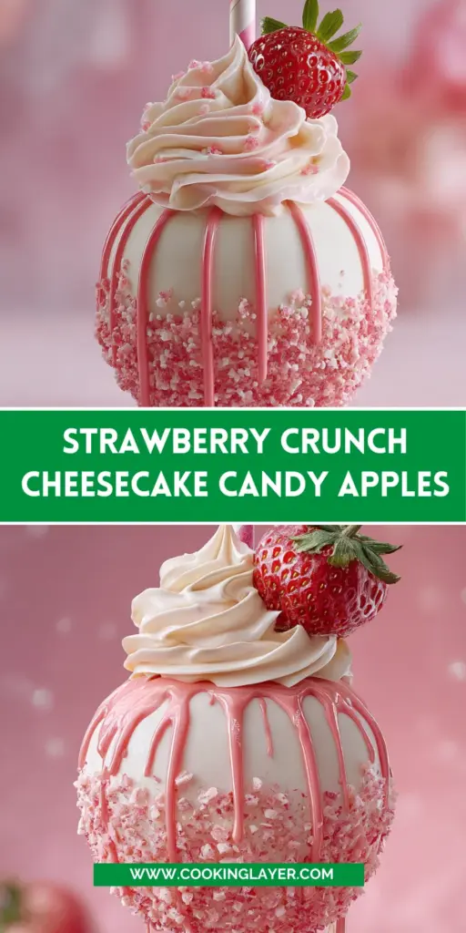 These Strawberry Crunch Cheesecake Candy Apples aren’t just a treat; they’re a celebration! Each vibrant bite brings together creamy cheesecake, tart strawberries, and a delightful crunch that dances on your palate. They’re perfect for all occasions, turning a simple dessert into a joyful event. Plus, making them with your loved ones can be a wonderful bonding activity! Whether it’s a busy weeknight or a festive gathering, these candy apples promise sweet smiles all around. So gather your family, share some laughs, and indulge in this scrumptious treat. I guarantee you’ll cherish every delightful moment spent enjoying them!