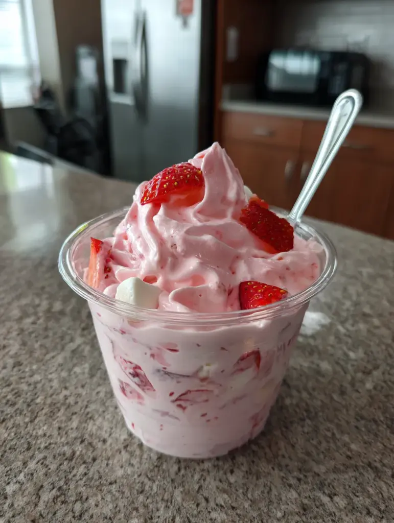 - Family-Style Bowl: Scoop it into a large clear glass bowl so everyone can see the pretty pink fluff and strawberry bits.