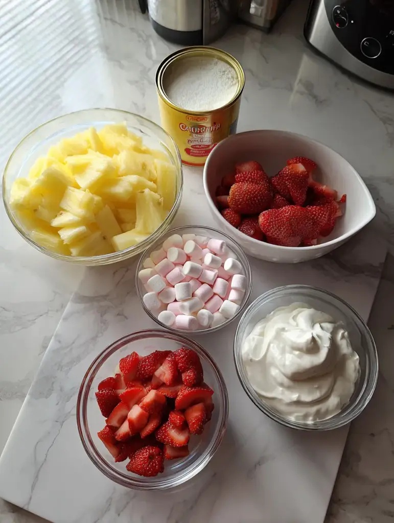 Here’s how to make your Strawberry Fluff Salad in just a few easy steps: