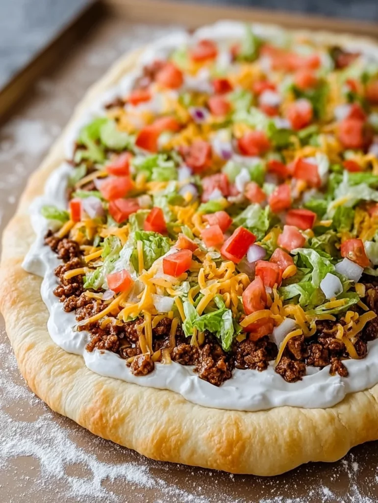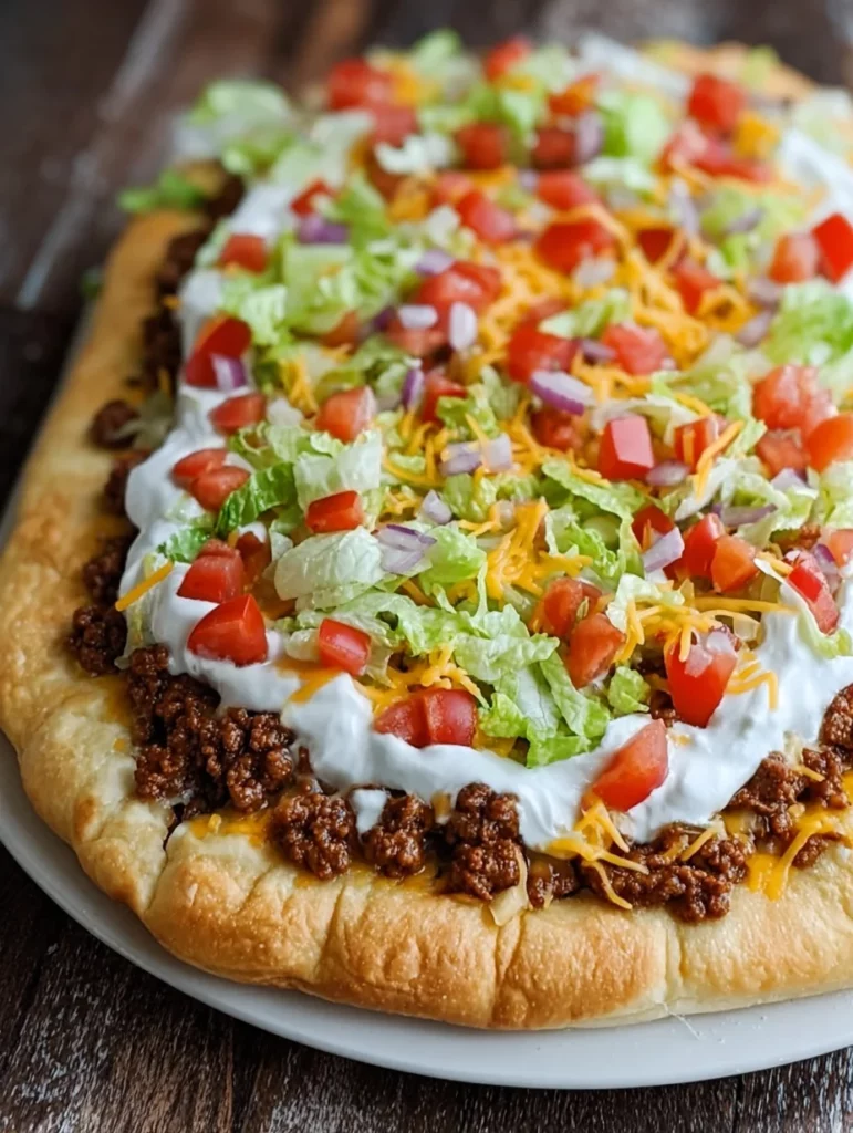 A delicious and fun appetizer that combines the flavors of tacos with the convenience of pizza, perfect for parties or a casual get-together.