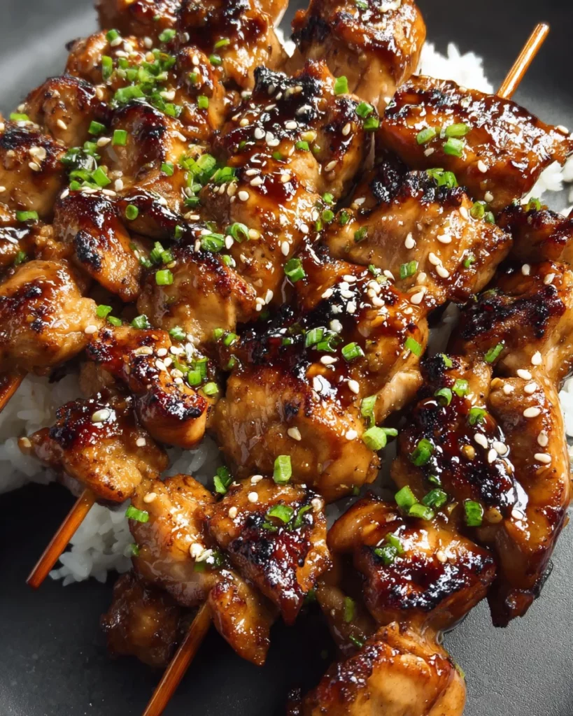 Delicious grilled chicken skewers marinated in homemade teriyaki sauce, perfect for BBQ gatherings.