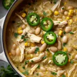 A creamy and flavorful white chicken chili made with tender chicken, creamy cheese, and beans to warm you up on a chilly day.