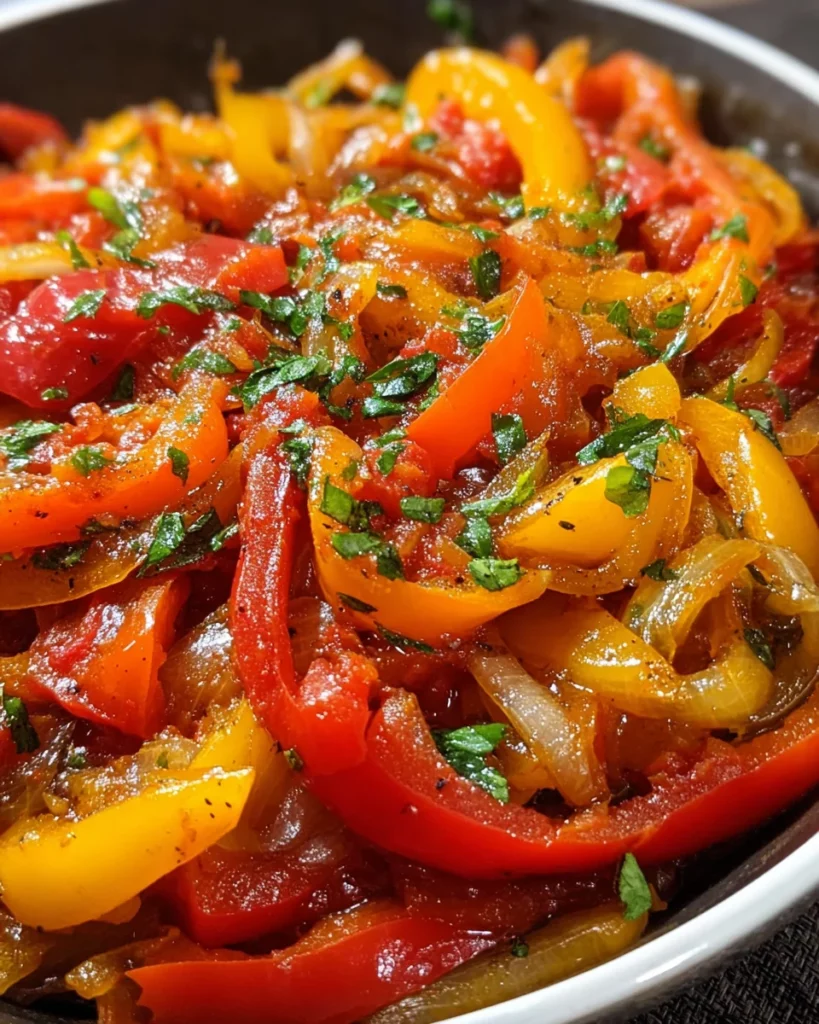 A delicious and colorful traditional Italian stew featuring bell peppers, onions, garlic, and tomatoes, perfect for a hearty meal.
