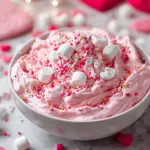 A delightful and festive dessert made with strawberry cake mix, whipped topping, cream cheese, and sprinkles, perfect for celebrating Valentine’s Day.