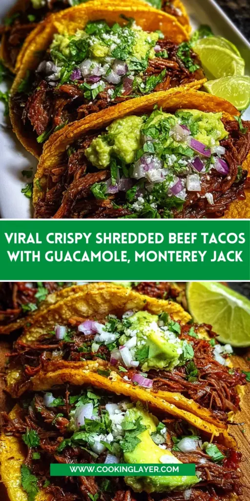 Cooking is much more than just a task; it’s a way to bring love to the table. These Viral Crispy Shredded Beef Tacos with Guacamole, Monterey Jack & Lime Zest embody that heartwarming idea. The combo of textures and flavors makes each taco a celebration! Whether it’s a casual family dinner or a festive gathering, these tacos create an unforgettable experience. Plus, when you watch your loved ones savor every bite, it fills your heart with joy. So roll up your sleeves, dive into this recipe, and let the delicious memories unfold!