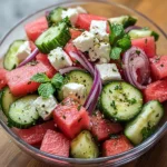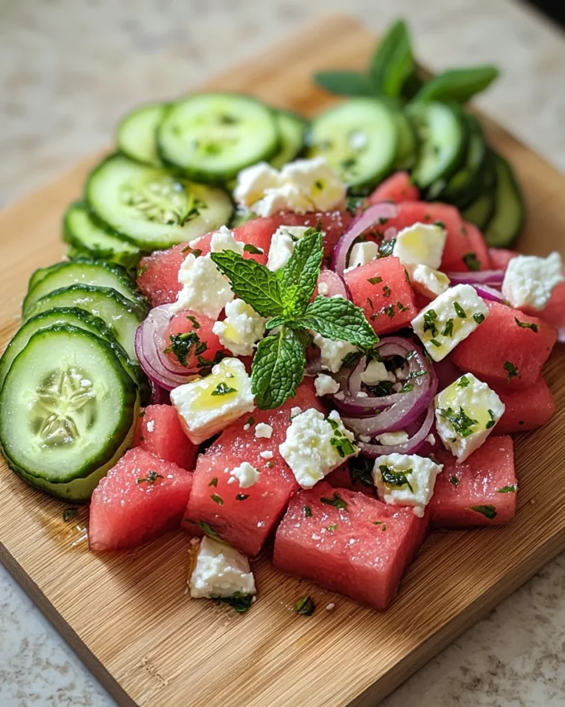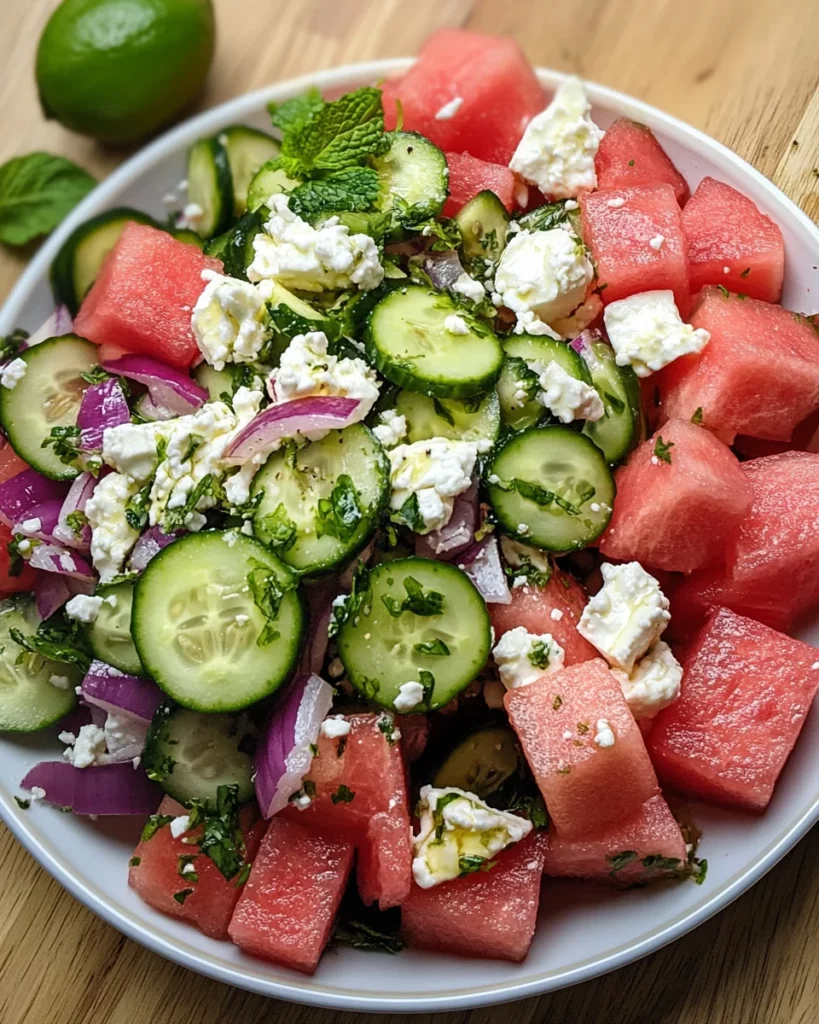 Watermelon Cucumber Feta Salad is a refreshing and flavorful dish perfect for summer gatherings.
