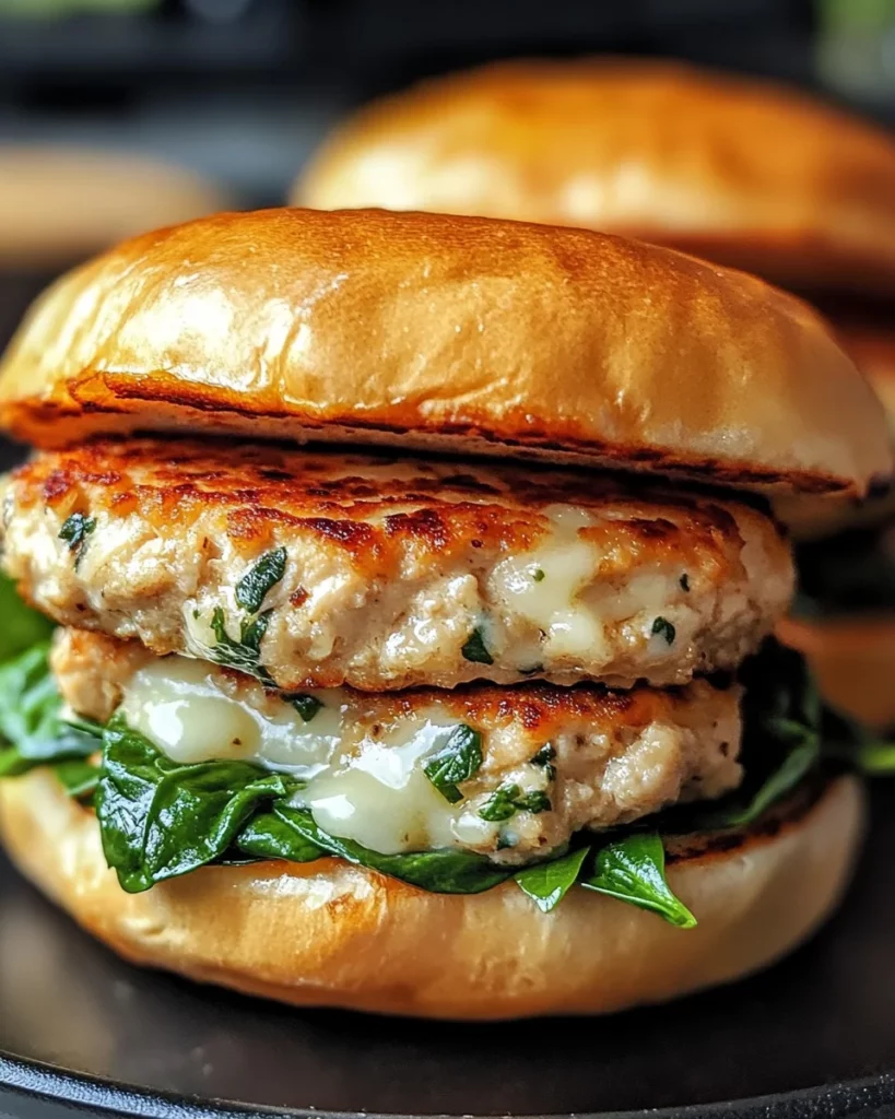 Delicious and healthy White Cheddar Spinach Chicken Burgers, perfect for a quick meal.
