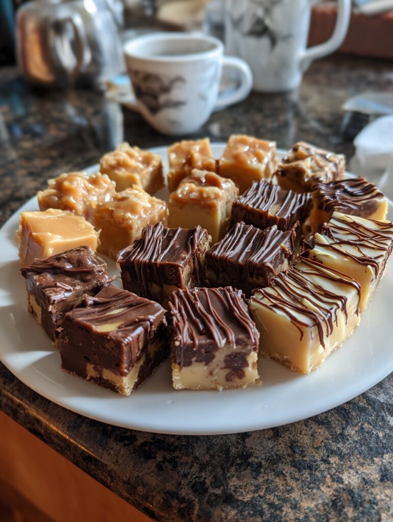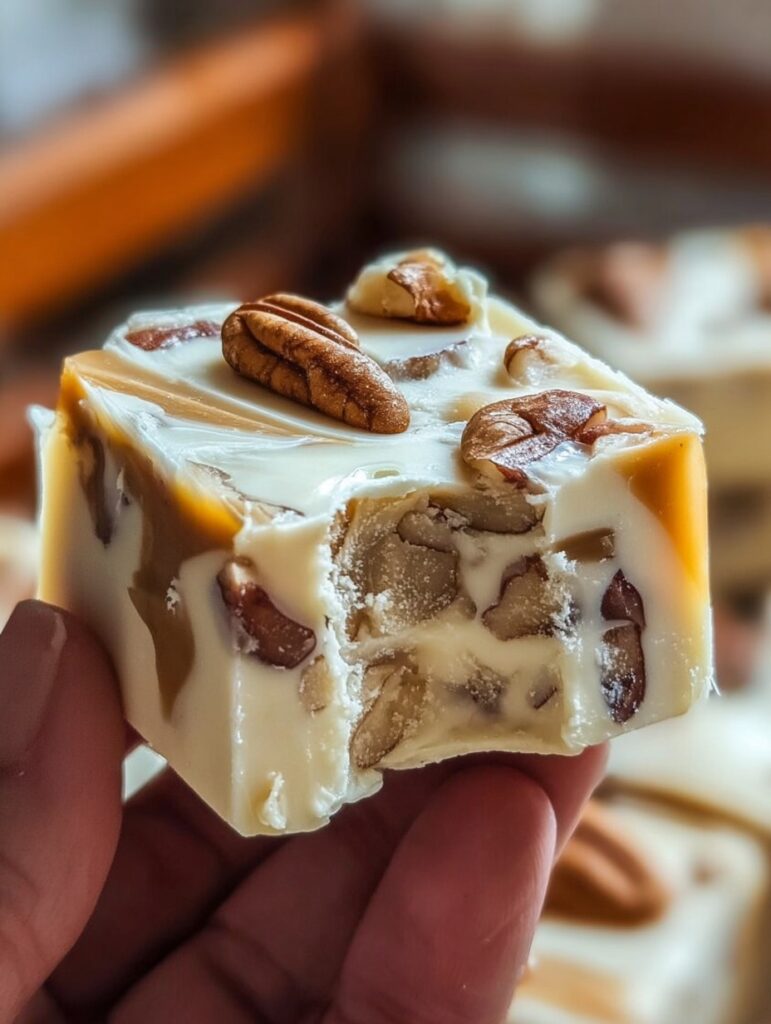 Let’s talk looks. When done right, this fudge is gorgeous—that shiny marbled swirl of white and caramel, glossy pecans peeking through, and thick square cuts that scream “eat me.” Texture-wise, it’s firm enough to slice cleanly but soft enough to melt on your tongue. Not too dense, not too crumbly—just perfect.
